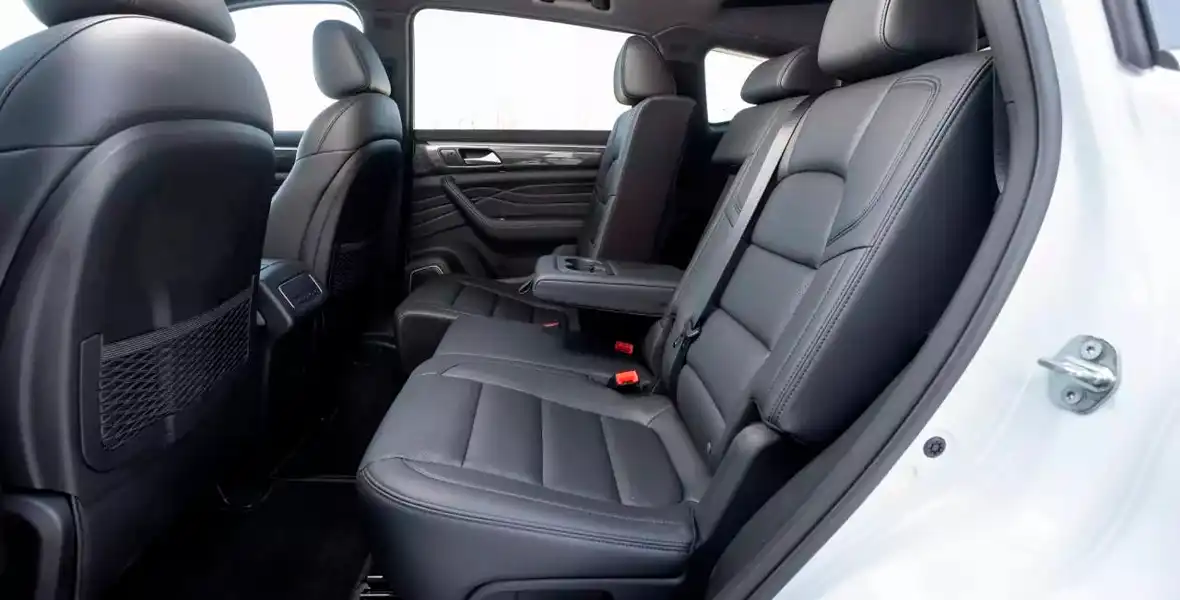 На втором ряду — вполне вольготно. Плюс имеются продольная регулировка, изменяемый угол наклона спинок, вместительные подстаканники, зарядные разъёмы, а на закуску — регулировка скорости вентилятора отопителя. Кстати, важный момент: машина имеет систему полного привода, но центральный тоннель отличается минимальной высотой.
